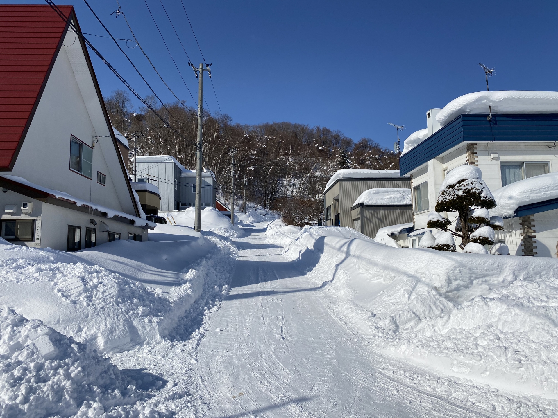 冬の札幌の住宅街は、排雪が間に合わず道幅が車1台分(約2.5m前後)になることも珍しくありません。